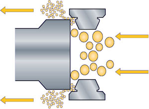 高壓均質(zhì)機主要工作是通過(guò)柱塞往復運動(dòng)將被加工物料以高壓的形式送至均質(zhì)閥,使物料流經(jīng)閥頭與閥座間微小的隙瞬受到湍流、空穴、撞擊、剪切等復合的作用,將原先粗糙的乳濁液或懸浮液加工成極細微的、均勻穩定的液與液相混乳化物或液與固分散物。